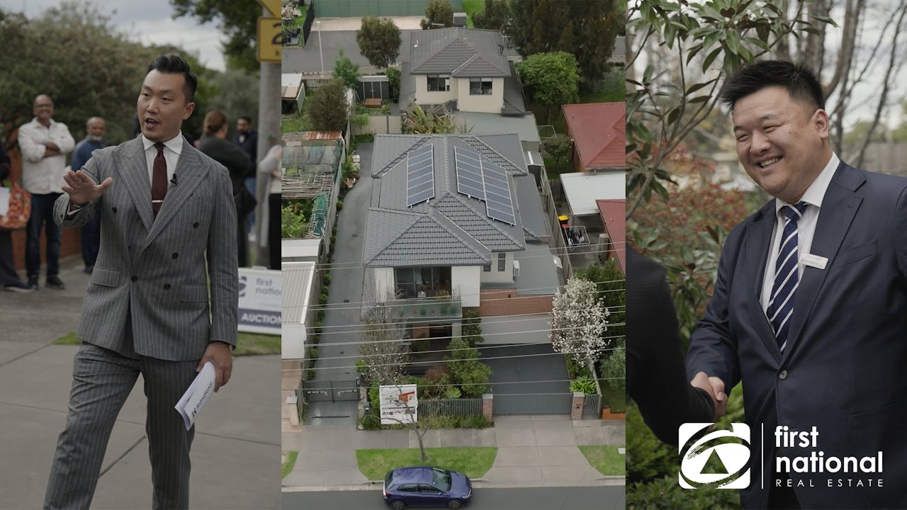 Ethan He representing First Nationals JXRE with a successful auction in the heart of Clayton South.